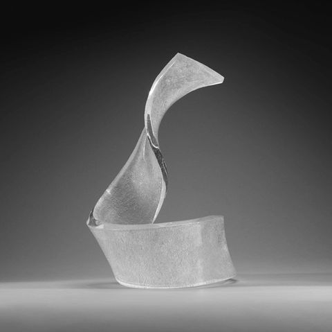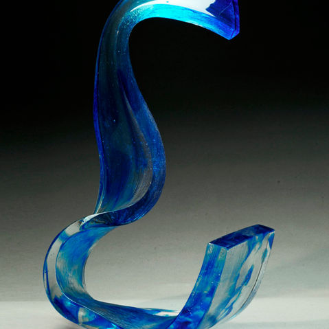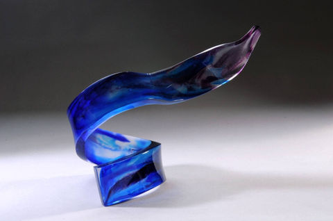 Le verre, ce matériau paradoxal est la base même de mes recherches. A la fois transparent et opaque, fragile et résistant, stable et instable… C’est un matériau amorphe qui peut être présenté à la fois comme un solide ou un liquide, et en dépit d’une apparente stabilité il est en réalité un matériau « hors d’équilibre ». En langage scientifique c’est une structure atomique instable, désordonnée comme un liquide mais figée comme un solide. Mes sculptures s’attachent à représenter ce flux de matière instable. Ce sont des forces en mouvement arrêtées dans le temps et l’espace, semblables à une vague arrêtée dans sa course par le gel. Une image fixée tel un instant photographique. J’aime donner l’illusion d’un temps suspendu entre ce qui a été (la forme en développement) et ce qui deviendra (l’imaginaire qui continue le déploiement de la matière). Proches de l’abstraction, elles permettent de proposer une vue de l’esprit, d’interpeller l’inconscient et l’imaginaire du spectateur, libre de recevoir et d’y projeter ce qu’il veut.
